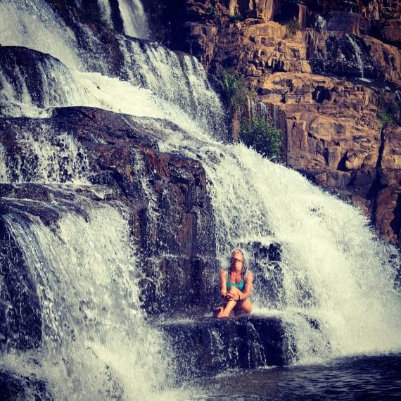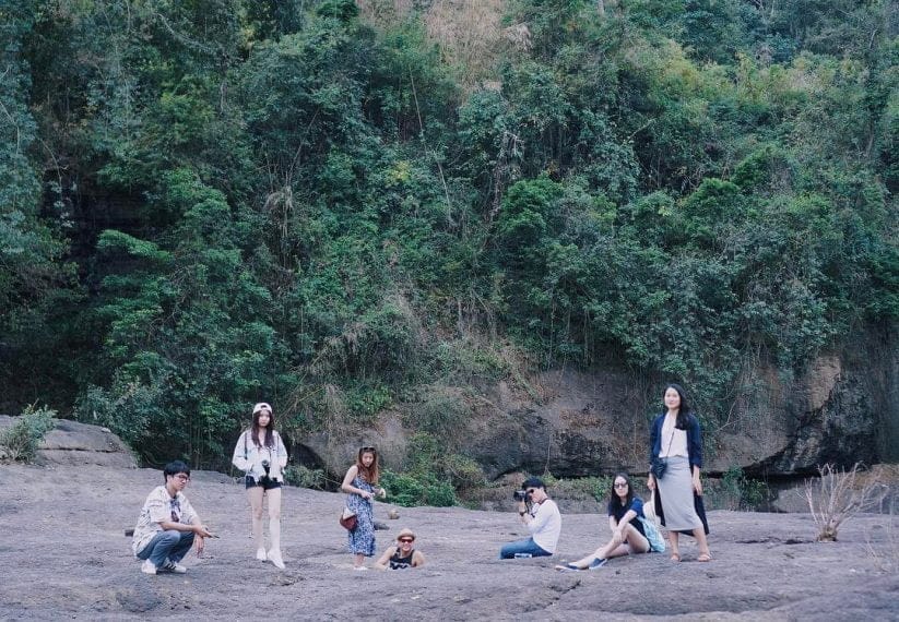 Phía dưới chân thác, là một thung lũng rộng lớn với những vách đá cao sừng sững, những vách đá tạo ra những mặt phẳng để có thể ngồi nghỉ ngơi, tạo dáng và chụp những shoot hình như mơ. Ảnh: Isabella Schrö on Instagram
